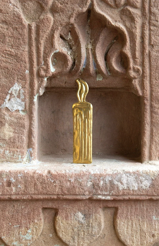 Handgjort ljus i mässing att hänga i julgranen eller dekorera med på andra sätt. Funkar lika fint året runt. Jag kommer hänga den på ett gammalt skåp redan till novent.